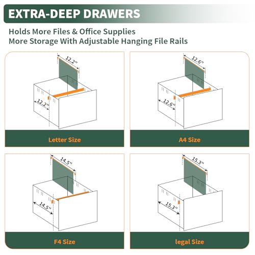 - 【مقاس ملفات متنوعة】- درج سفلي قابل للتعديل يتسع لملفات المقاس المكتبي والمقاس القانوني ومقاس A4 بكل سهولة.
