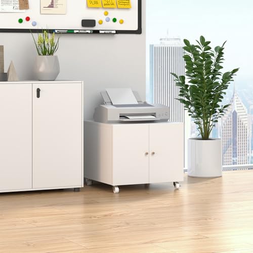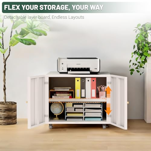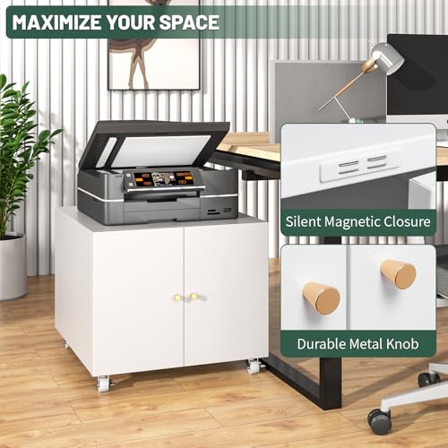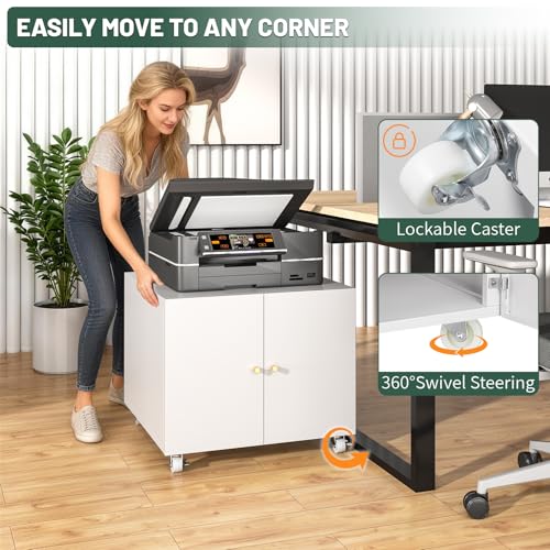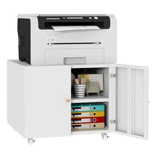 TEEALUBAN - Mobile Printer Stand with Storage & Adjustable Shelf - Home Office Desk with File Cabinet, Durable Waterproof Design for Garage or Workspace (White)