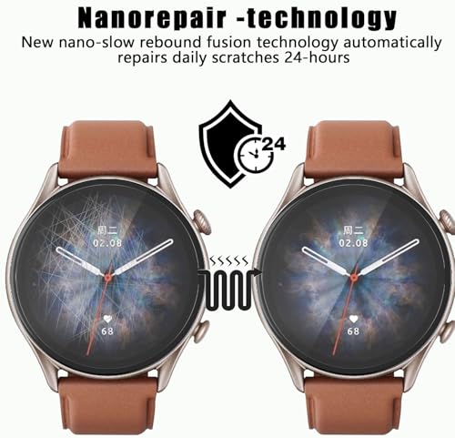 Teenrpov - غشاء واقي من تينربوف لساعة امازفيت GTR 3 برو [غير زجاجي]، 3 قطع من غشاء واقي مرن من البولي يوريثين الحراري متوافق مع امازفيت GTR 3 برو، فائق الشفافية، مضاد للخدش، تغطية قصوى