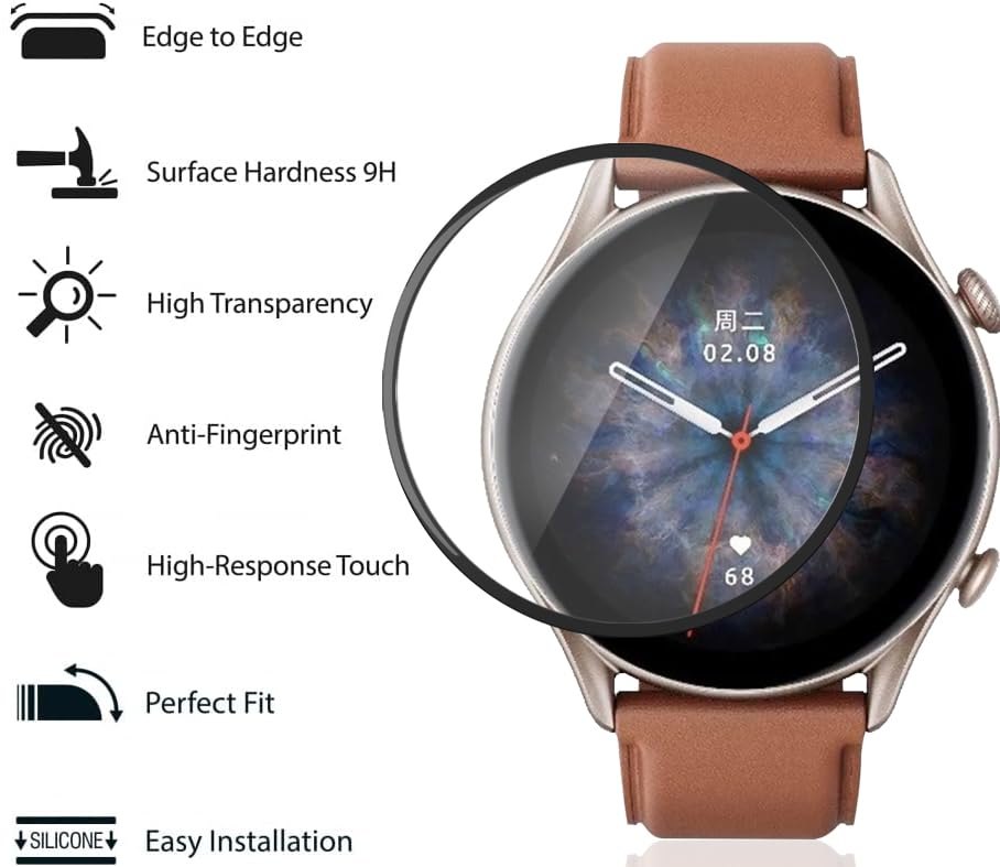- 【تغطية كاملة】يغطي واقي الشاشة الكامل امازفيت جي تي ار 3 برو السطح بالكامل حتى حافة الشاشة، كما توفر الحواف الدائرية خماسية الأبعاد المصممة خصيصًا راحة إضافية وحماية معززة للحواف.