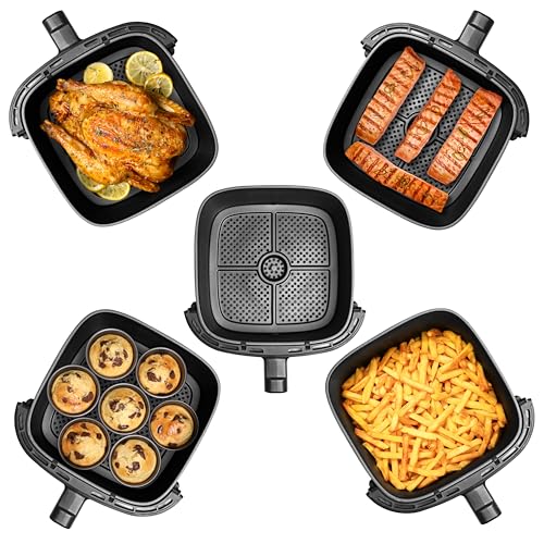 - Versatility: 10 preset cooking programs (Fries, Chicken, Steak, Fish, Dessert, Pizza, Nuggets, Vegetables, Shrimp and Bacon) to cook delicious dishes every time.