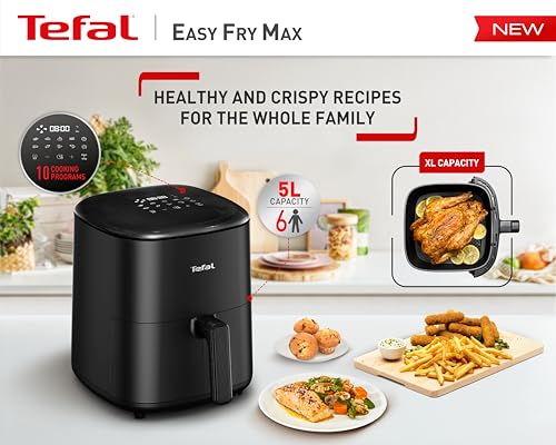 T-Fal - Tefal Easy Fry Max, Hot Air Fryer, 5L Capacity, 10 Preset Programs, Digital, Black - EY2458EG