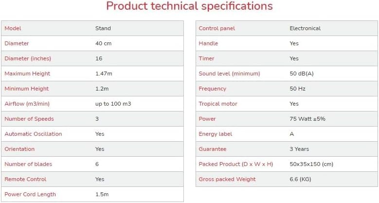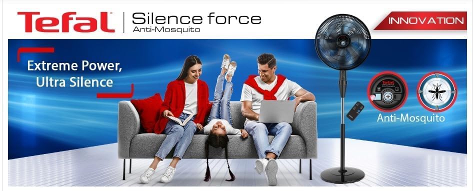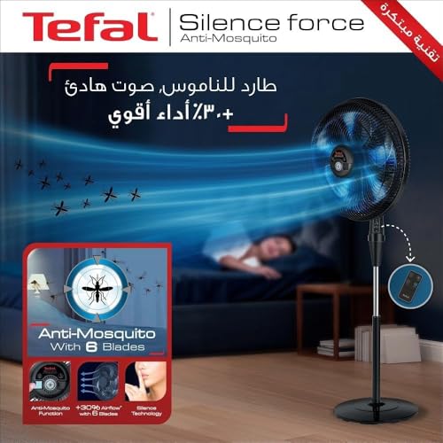 T-Fal - Tefal Silence Force Stand Fan, 16 Inch, 3 Speeds, Remote Control, Anti-Mosquito Repellent - VG4135EE