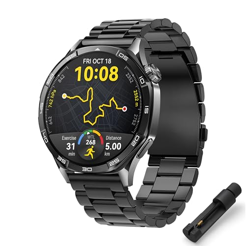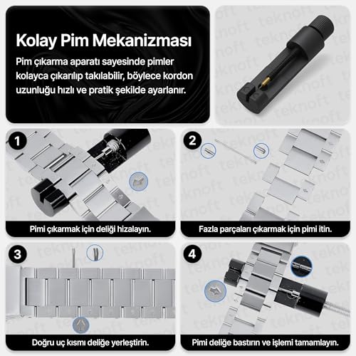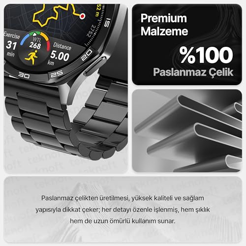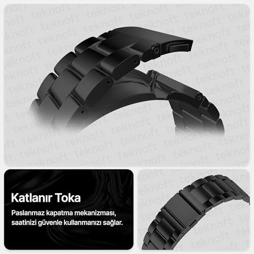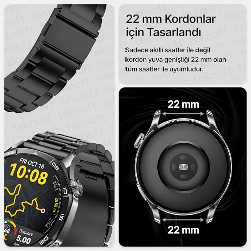 Teknoft - سوار ساعة فولاذ مقاوم للصدأ 46 ملم لساعة هواوي Gt - Gt2 - Gt2 برو - Gt3 - Gt3 وسامسونج جير S3 فرونتير - كلاسيك - جالاكسي ووتش 3 تيك من تيكنوفت مقاس 22 أسود