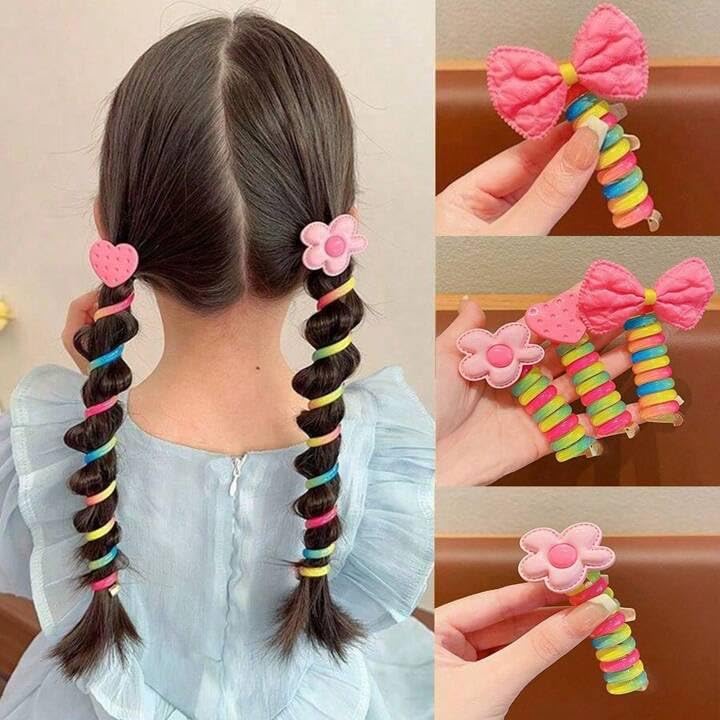 Generic - Telephone Wire Colorful Hair Bands Ponytail Braids Fixed Hair Rope for Women Girl Accessory No Crease Elastic Coils Multi Color Hair