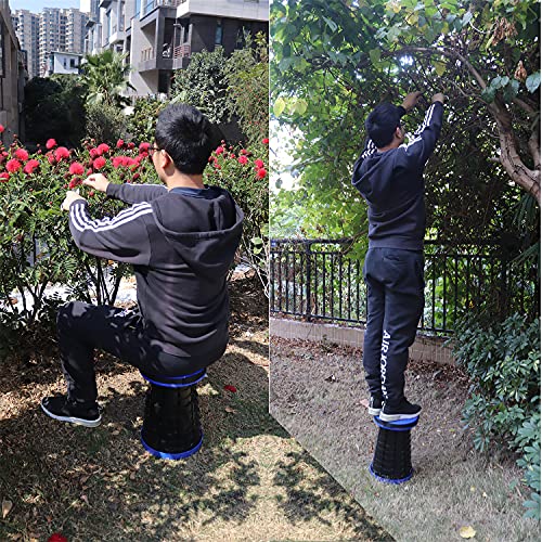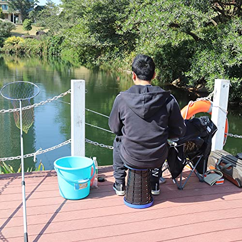 - [SAFE & STABLE] Pop up chairs use of high-strength heavy-duty environmentally material ABS plastic is tough and rigid. The multi-ring buckle design, tight connection buckle and non-slip base ensure the safety and stability of this telescopic stool. The surface of the stool is frosted and non-slip design. Provide a safe and comfortable sitting position. The maximum load capacity is up to 360 pounds.