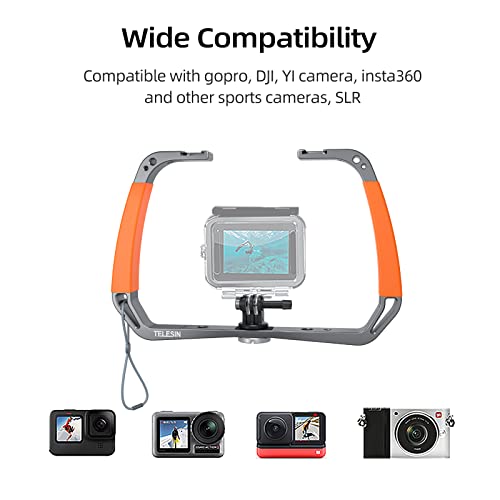 TELESIN - اداة تثبيت محمولة باليد من تيليسين لجوبرو هيرو 10 9 8 مع سوال معصم حامل كولد شو لكاميرا الفيديو دي جيه اي اكشن 2 اوسمو انستا 360 ون ار برتقالي