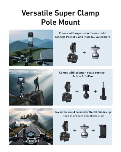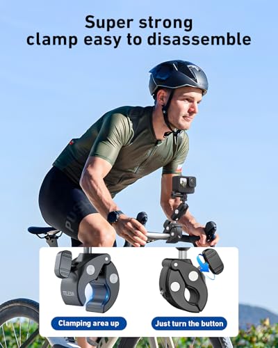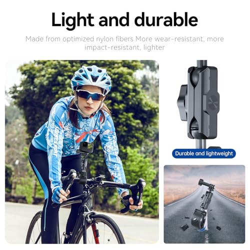 - 【مادة مطورة】 حامل المشبك هذا مصنوع من البلاستيك عالي الجودة + مادة ألياف النايلون، وهو أكثر استقرارًا من مشابك أنبوب الدراجة العادية، مما يساعدك على التقاط صور فيديو عالية الجودة ومستقرة أثناء أنشطة الركوب أو الحركة.