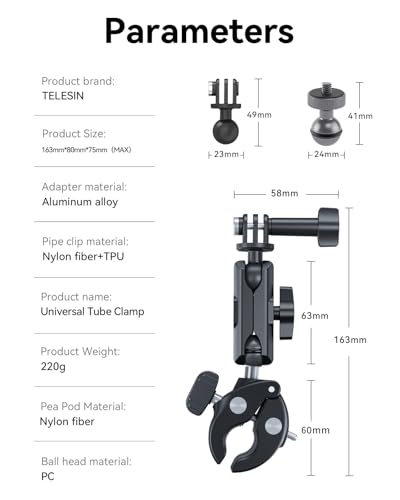 TELESIN - تيليسن مشبك تثبيت على المقود مع رأس كروي مرن 360 درجة للدراجة النارية والقارب والمركبات على شكل شجرة ملحق تركيب لملحقات فيديو جوبرو انستا 360 دي جيه اي