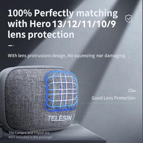 ElectronGeek - TELESIN Small Carry Case for GoPro HERO13/12/11/10/9/8, Pocket Size Protective Case Travel Bag with Half Open Zipper Supports Connecting with Selfie Stick and Tripod Accessories -Grey
