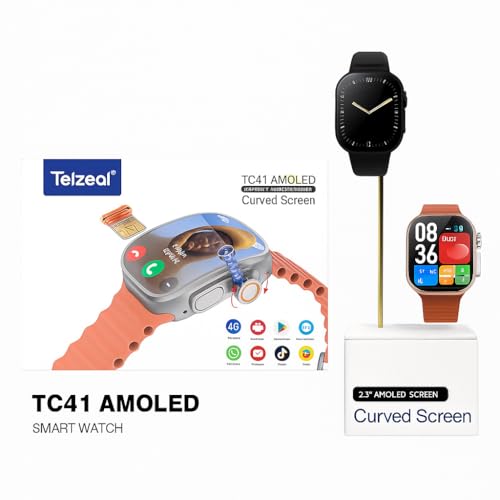 Telzeal TC41 5G AMOLED Smart Watch with SIM and Built-in Camera Enjoy an Integrated Experience with HD AMOLED Display and Independent SIM Calling Hidden Camera in Side Button, 64GB Space 6GB RAM