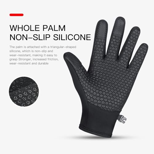 - قفازات متينة ومضادة للانزلاق: تعمل طباعة السيليكون على راحة اليد والأصابع على تعزيز الإمساك وتمنع الانزلاق. خياطة معززة على المناطق الحساسة تضمن المتانة. مثالي للرياضات والأنشطة الخارجية في الشتاء.