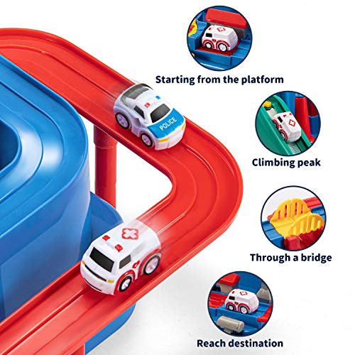 TEMI - لعبة مغامرات مضمار السباق للأطفال الأولاد والبنات من سن 3-7 سنوات من تيمي - مجموعة ألعاب أحجية إنقاذ المدينة مع 3 سيارات صغيرة، ألعاب مغناطيسية، هدية ألعاب تعليمية لمرحلة ما قبل المدرسة