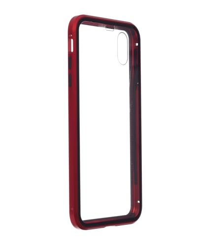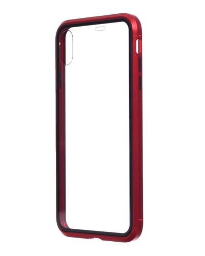 Generic - Tempered Glass And Metal Frame Magnetic Phone Case, Double Sided Shockproof And Anti-Scratch Cover, Fits iPhone XS Max (6.5) - Black Red