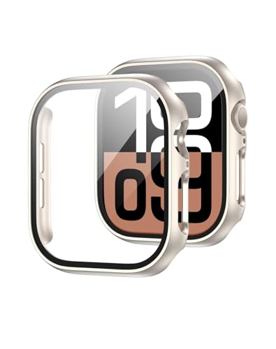 فكرة - حافظة حماية من الزجاج المقوى فكرا لساعة ابل سلسلة 10 مقاس 46 ملم / 42 فائق النحافة البولي كربونات لشاشة اي ووتش ستارلايت -
