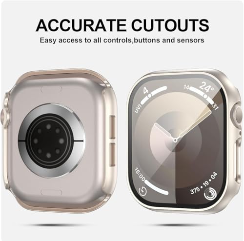 • تصميم مقاوم للخدش والانفجار: يتميز جراب ساعة ابل 10 بهيكل صلب من البولي كربونات، واقي شاشة من الزجاج المقوى بدرجة صلابة 9 مقاوم للانفجار يحمي ساعتك بشكل مثالي من الغبار والماء والخدوش والاصطدامات والسقوط. يمنع التآكل العرضي والخدوش من أدوات القطع والمفاتيح والأشياء الصلبة الأخرى
