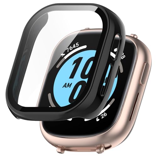 fashion mania - Tempered Glass Film + Case Screen Protector Full Coverage Hard for honor watch 4. (black)