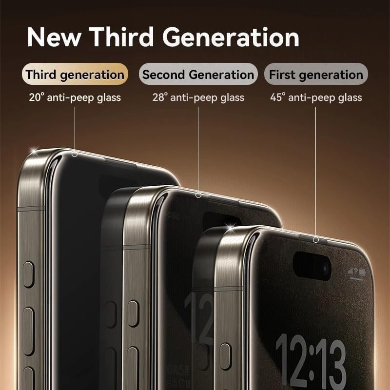 Generic - واقي شاشة للخصوصية من زجاج مقوى لموبايل آيفون 16 برو، إزالة الغبار اوتوماتيك، سهل التركيب، بدرجة صلابة 9، تصميم شفاف HD عالي الدقة، مضاد للبصمات، مقاوم للفقاعات