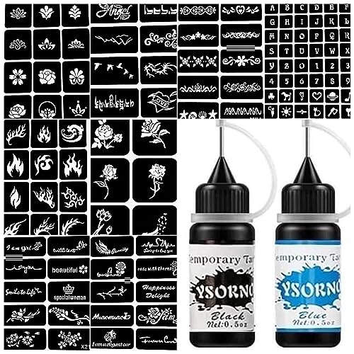 Generic - Temporary Tattoo Ink 2 Colors (Blue - Black) with 100 Blank Tattoo Pictures for Painting