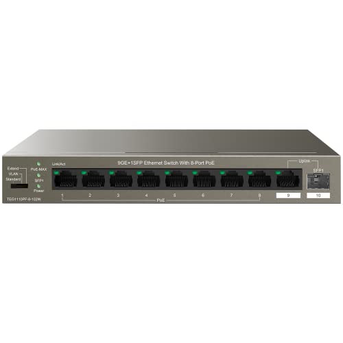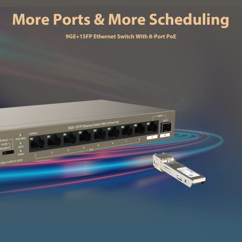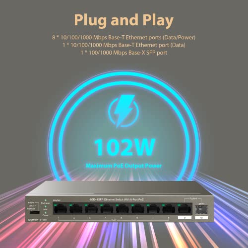 - 【𝗣𝗟𝗨𝗚 𝗔𝗡𝗗 𝗣𝗟𝗔𝗬】8 port PoE+ switch requires no configuration or software, supports both desktop and wall mounting. Tenda TEG1109P-8-102W is your perfect 8 port PoE switch Gigabit choice