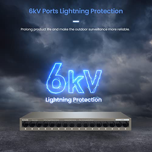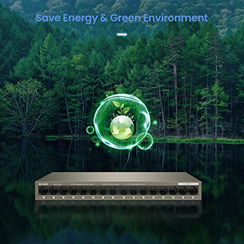 Tenda - Tenda 16 Port Gigabit Switch, Ethernet Switch with Port LEDs, Network Switch, Ethernet Splitter/Hub, with Vlan, Desktop or Wall-Mounting, Fanless, Plug & Play, Energy-Saving, Sturdy Metal(TEG1016M)