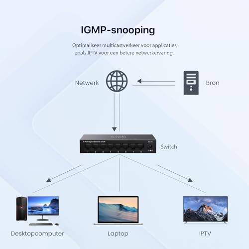 - 8 gigabit ports ensure the speed of the transmission of large files and improve transmission efficiency.