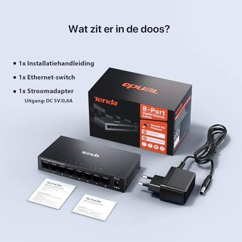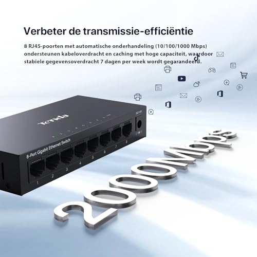 Tenda - Tenda 8 Port Gigabit Switch, Unmanaged Network Switch, Ethernet Switch, Office Ethernet Splitter, Internet Switch, Home Network Hub, Plug-and-Play, Silent Operation, Desktop or Wall Mount (TEG1008M)
