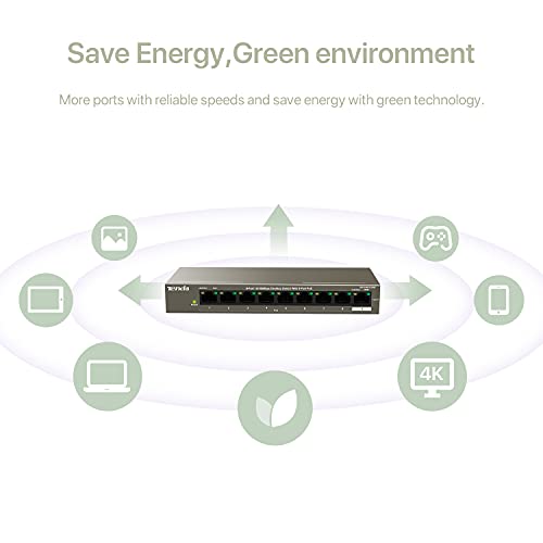 Tenda - Tenda 9 port 10/100 mbps fast unmanaged ethernet network switch with 8 poe ports@63w (tef1109p) | desktop | plug & play | fanless metal design | shielded ports | limited lifetime protection