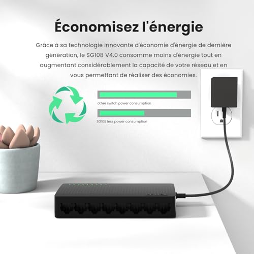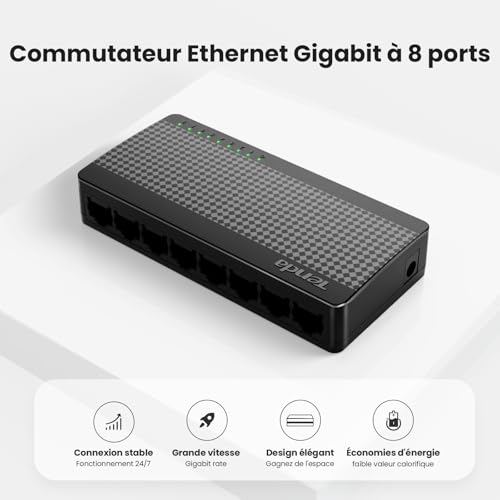 Tenda - Tenda Gigabit Ethernet Switch, 8 Port Gigabit Switch 10/100/1000Mbps, Network Switch with LED Indicator, Plug & Play, Mini Format, Desktop or Wall Mount, Plastic Shell (SG108 V4.0)