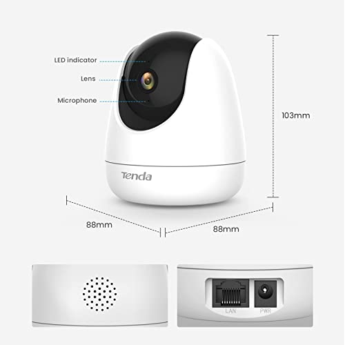 Tenda - تيندا كاميرا مراقبة داخلية 2K سلكية/لاسلكية تعمل بالواي فاي، كاميرا مراقبة منزلية ذكية 360 درجة للاطفال والكلاب والحيوانات الاليفة، رؤية ليلية 12 متر، صوت ثنائي الاتجاه، تتبع ذكي، تقنية الذكاء