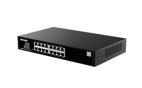 Tenda - مفتاح جيجابت ايثرنت 16 منفذ TEG2216D، مفتاح شبكة غير مدار، سعة تحويل 32 جيجابايت في الثانية، التوصيل والتشغيل، غطاء معدني، يمكن تركيبه على سطح المكتب أو الرف من تيندا
