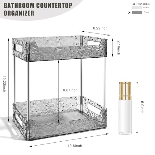 TENDER EPOCH - 2-Tier Bathroom Counter Organizer Countertop Storage, Dresser Organizer Vanity Tray for Makeup, Perfume Organizer Cosmetics Skincare Shelf Organizer - Grey
