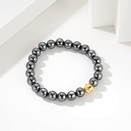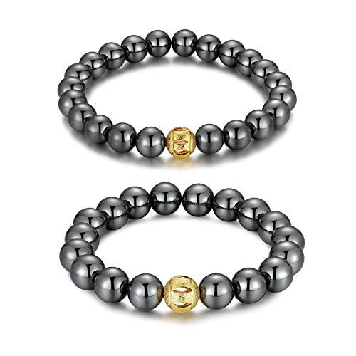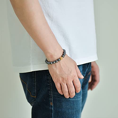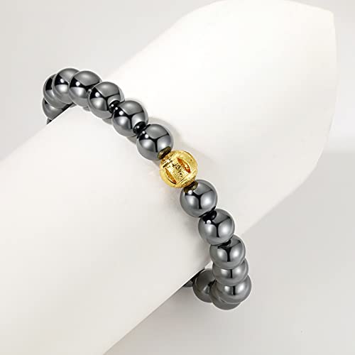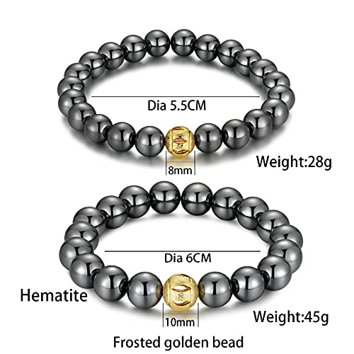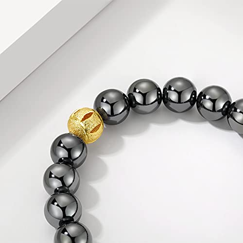 TENGTENGFIT - 8mm & 10mm Round Hematite Beads with Dull Polish Gold Plated Beaded Unisex Bracelet Lovers Fashion Jewelry