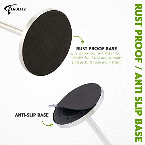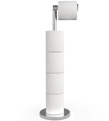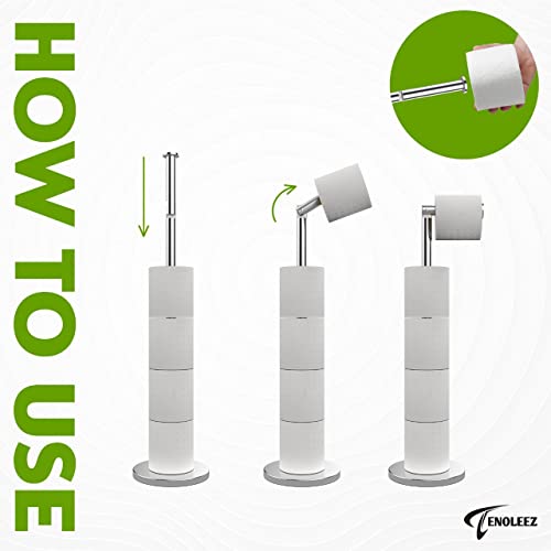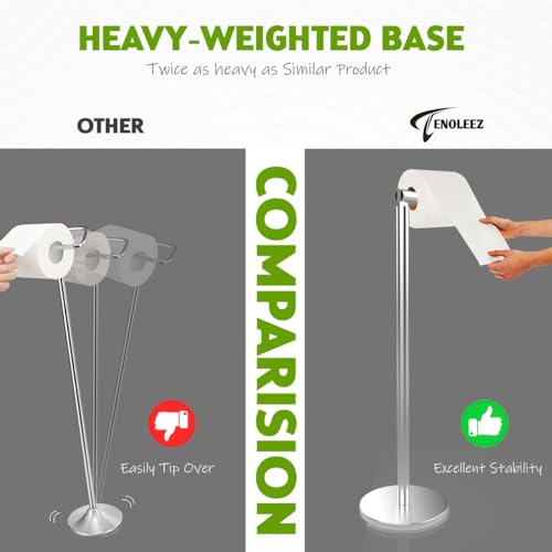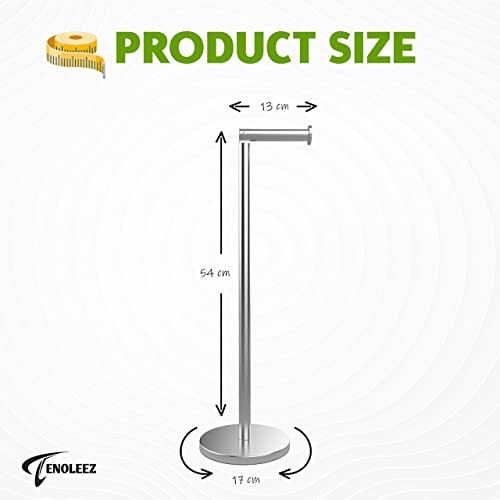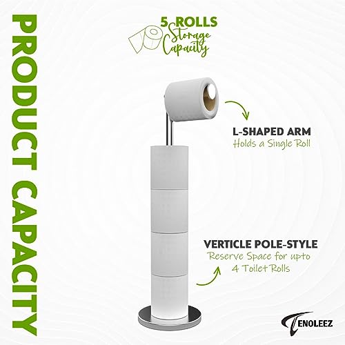 TENOLEEZ - Toilet Roll Holder Free Standing – Toilet Roll Stand for 5 Rolls – Stainless Steel Loo Roll Holder with Heavy Stable Base – Pedestal Free Standing Toilet Roll Holder for Bathroom (Silver)