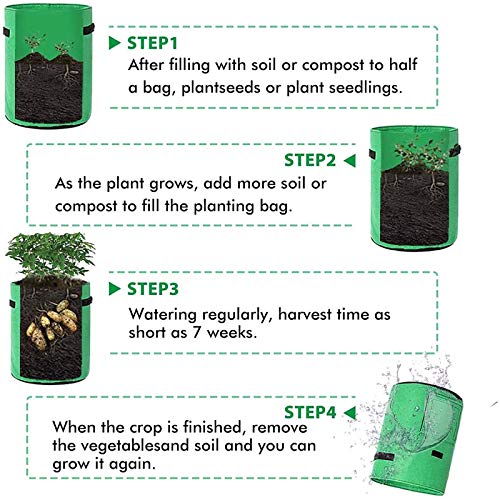- 【استخدام واسع】- مناسب للزراعة في الأماكن المغلقة والمفتوحة. 10 جالون مثالي للباحات والحدائق الصغيرة والشرفات وأي مساحة خارجية. لا تستخدم فقط لزراعة البطاطس والطماطم والفجل والجزر والبصل والخيار والعديد من الخضروات الأخرى. ولكن يمكن استخدامها أيضًا كحقيبة تخزين، مثل وضع الملابس المتسخة وحزم الأدوات وما إلى ذلك.