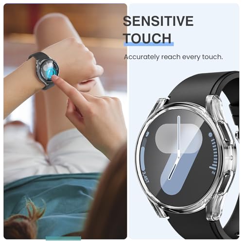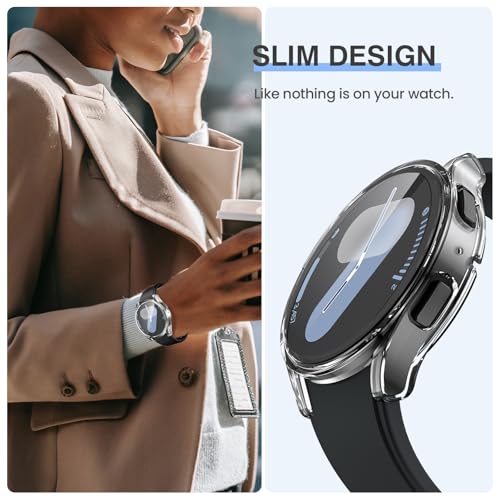Tensea - Tensea [2Pack for Samsung Galaxy Watch 7 2024 Screen Protector Case 44mm Accessories, Protective Face Cover for 44 mm, Hard Bumper Built-in Tempered Glass Film for Women Men