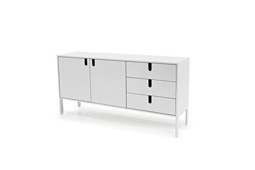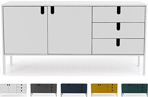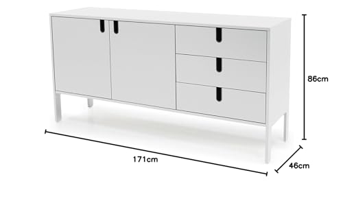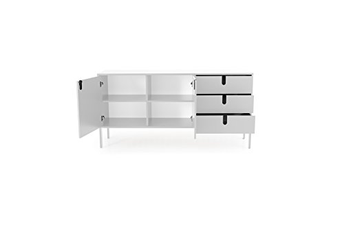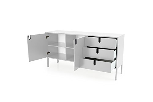 TENZO - Tenzo 8555-001 UNO Designer Sideboard 2 doors, 3 drawers, White, MDF and particle board, lacquered finish, (HxWxD) : 86 x 171 x 46 cm