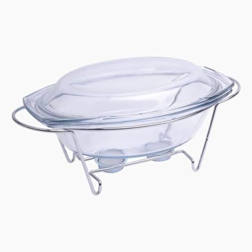 Termisil - Termisil Oval Pot with Lid and Metal Holder with Candles, 2.9 Liter Capacity, Clear