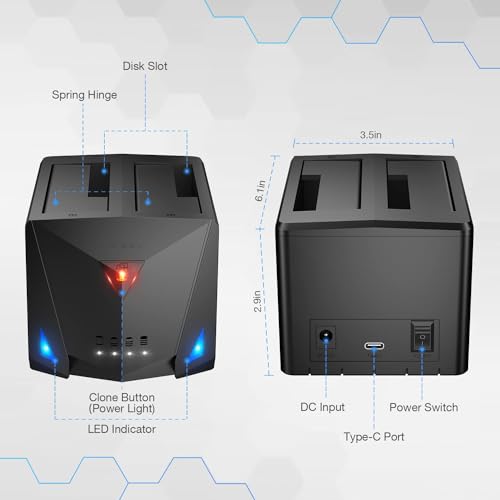 - 💻 【Efficient Offline Copy Feature】Perform offline cloning with this HDD docking station without the need for a computer. Simply insert two HDDs into the designated slots—Slot 1 for the Source Disk and Slot 2 for the Target Disk. Note: The capacity of the target HDD must be equal to or larger than the source HDD.