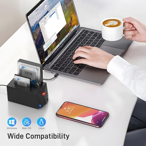 - 💻 【Universal Compatibility】Designed for broad use, this docking station supports both 2.5" and 3.5" SATA HDD/SSD and is compatible with Windows, Mac OS, and Linux operating systems. Enjoy a hassle-free setup with plug-and-play functionality—no drivers required!
