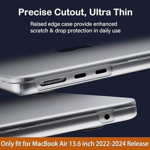 - [شفافية عالية ومطابقة للألوان] - الحافظة مصنوعة من مواد بلاستيكية عالية الجودة مع شفافية عالية، تحافظ على ماك بوك اير 13.6 الأصلي وتبدو وكأنها ماك بوك عارية.