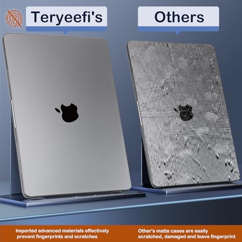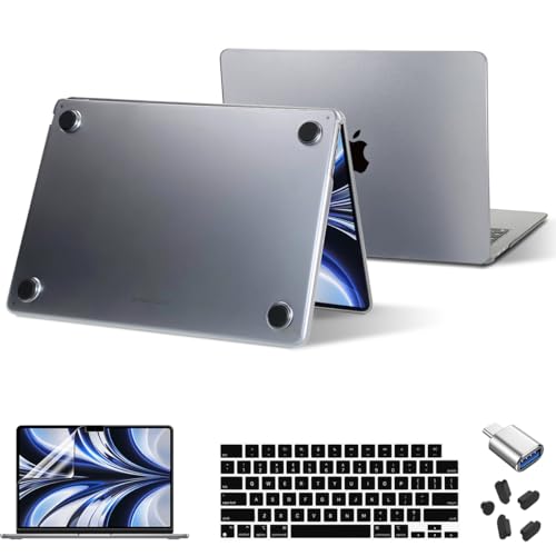Teryeefi - تيريفي حافظة لجهاز ماك بوك اير A3113 A2681 مقاس 13.6 انش بشريحة M3 M2 اصدار 2022-2024 غطاء صلب غير لامع ولون وغطاء كيبورد ومحول او تي جي رمادي شفاف للغاية بولي كربونات