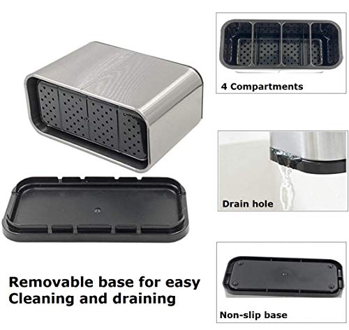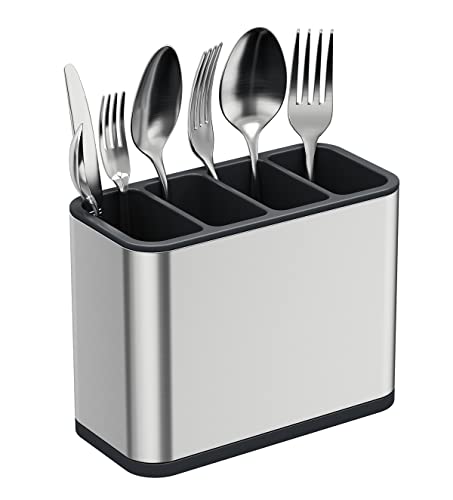 TESOT - Silverware Caddy Utensil Caddy Spoon Holder with 4 Divided Compartments, Sturdy Stainless Steel, Rust Proof