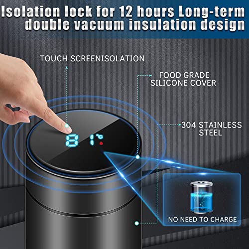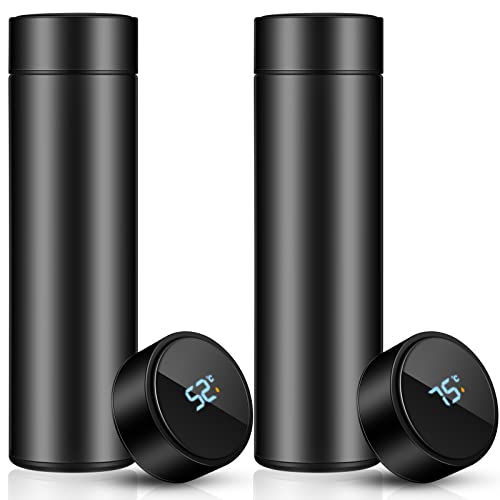 Tessco for you - قطعتان من زجاجات المياه الذكية مع شاشة رقمية لعرض درجة الحرارة للقهوة والشاي وكوب حراري LED بجدار مزدوج معزول بتفريغ الهواء الستانلس ستيل مقاوم للتسرب للحفاظ على الدفء اسود تيسكو مواد مختلطة