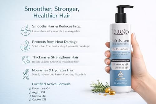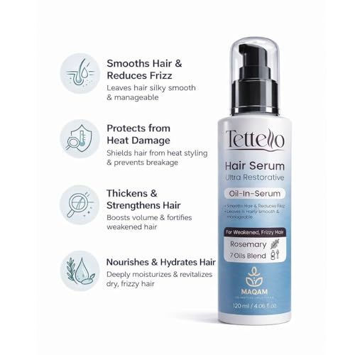 Tettello - Tettello Hair Serum Ultra Restorative, Oil-In-Serum with Rosemary & 7 Oils Blend, For Weakened Frizzy Hair, 120ml
