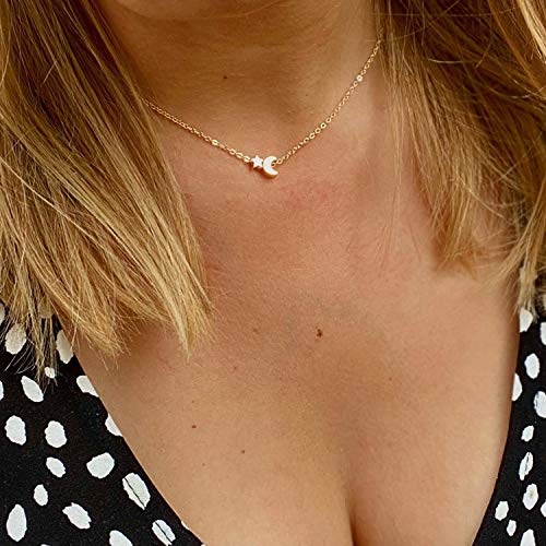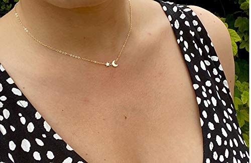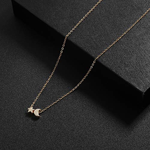 Tewiky - Tewiky 18k Gold Plated Tiny Moon Star Pendant Necklace Dainty Delicate Necklace for Women Girls- multi