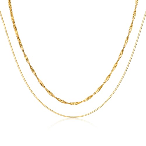 Tewiky - سلسلة متعرجة مرنة ثعبان مسطحة من تويكي مطلية بالذهب 14 قيراط مقاس 1.5 - 5 ملم للنساء - 15 - 16 بوصة طول معدن