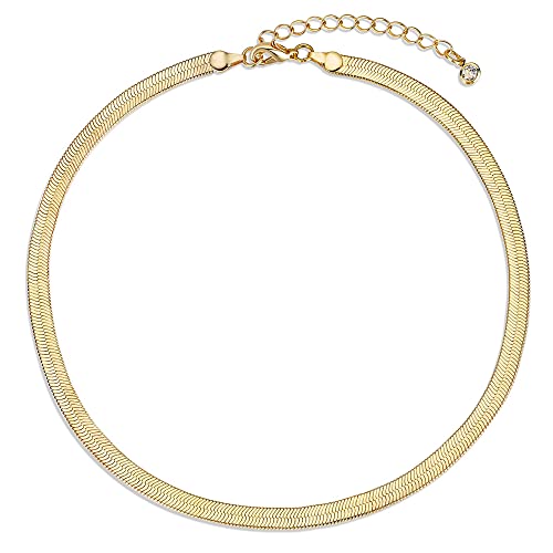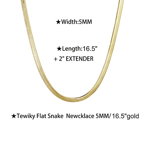 Tewiky - Tewiky Silver 5MM Herringbone Necklace Silver Flat Snake Chain Necklace for Women Silver Thick Chunky Chain Choker Necklace Dainty Jewelry Gift for Women Girls