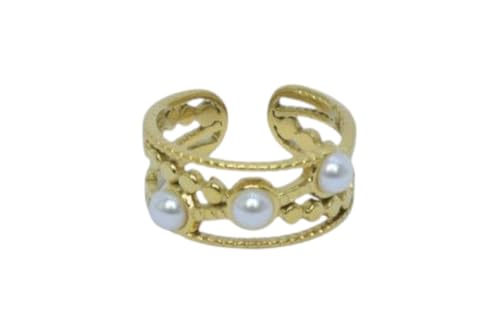 Generic - خاتم مفتوح من الستانلس ستيل مزخرف مع لؤلؤ - ذهبي