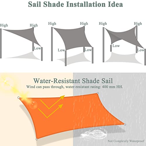 - Easy to Install: Find your supports and tight the shade sail to them with ropes by the D-ring, the ropes are included in the bags you received. Install at a 20-40 degree angle with maximum tension to allow runoff.